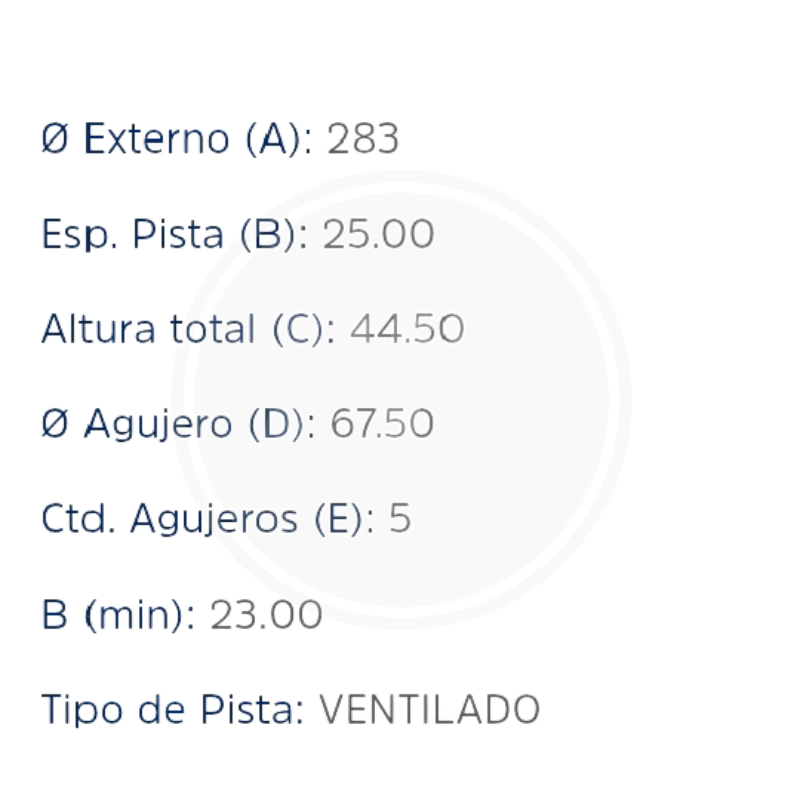 - Diámetro: 300mm, Espesor: 26mm, Número de agujeros: 5, Material: Hierro fundido de alta resistencia al desgaste y altas temperaturas.