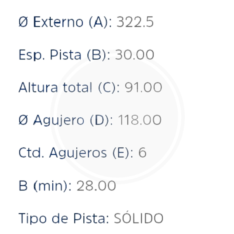 • Diámetro: Medida específica para adaptarse al sistema de frenado del Mercedez 711 Del.