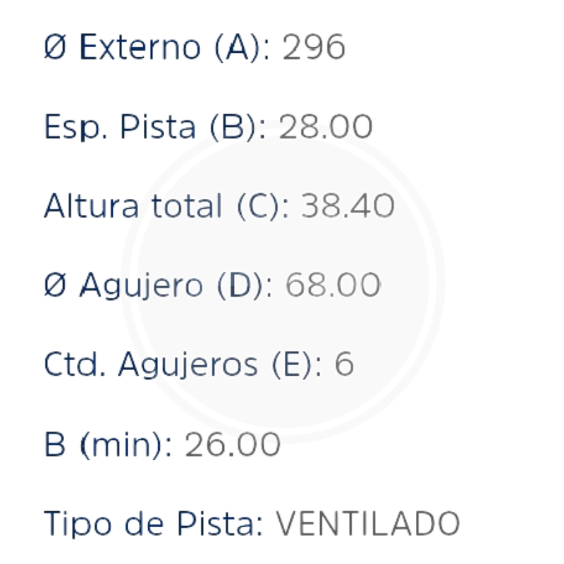 • Superficie de frenado texturizada o perforada para mejorar la disipación de calor y prevenir el sobrecalentamiento.